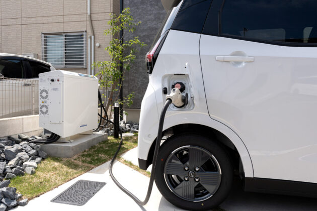 電気自動車(EV)やプラグインハイブリッド車(PHEV)の駆動用バッテリーに蓄えた電力を、家庭で使えるようにする双方向の電力供給システムです。