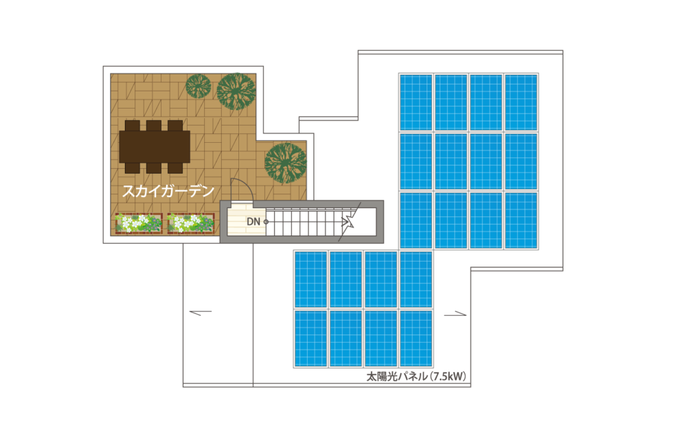 全館空調YUCACOシステム、屋上庭園、V2H、太陽光パネル7.5kW搭載