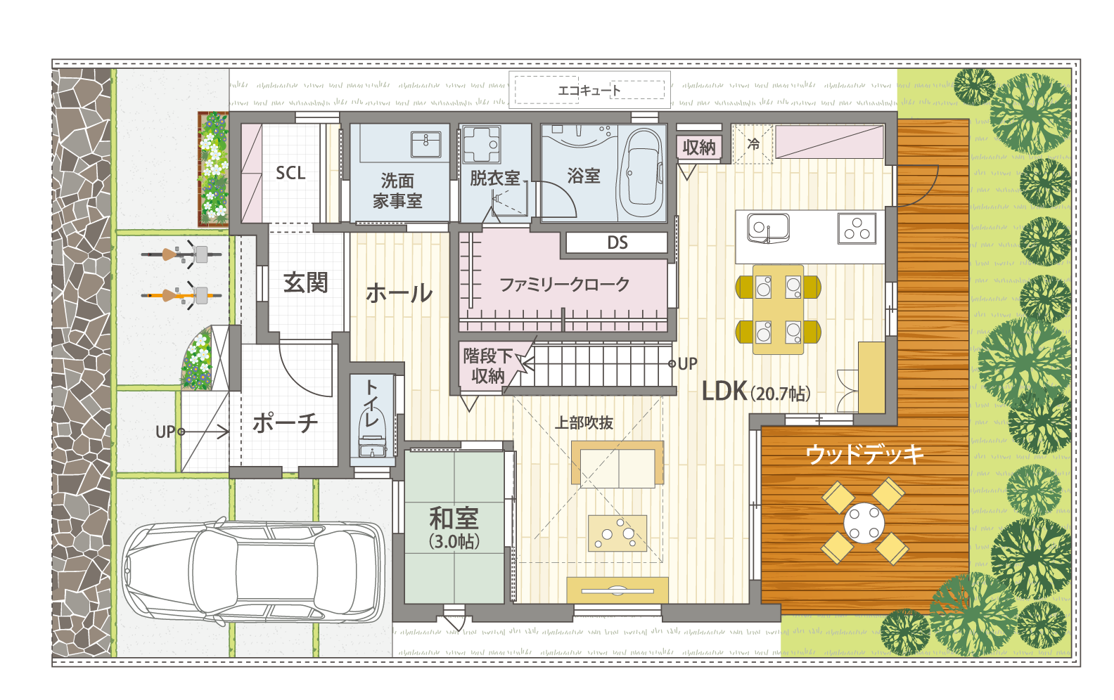 | 建物設備 | 全館空調(YUCACOシステム)、太陽光発電システム、V2H |
