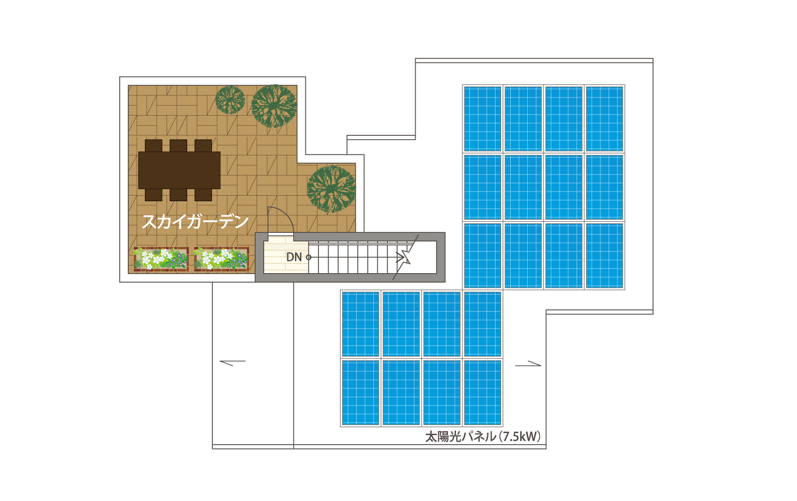 全館空調YUCACOシステム、屋上庭園、V2H、太陽光パネル7.5kW搭載
