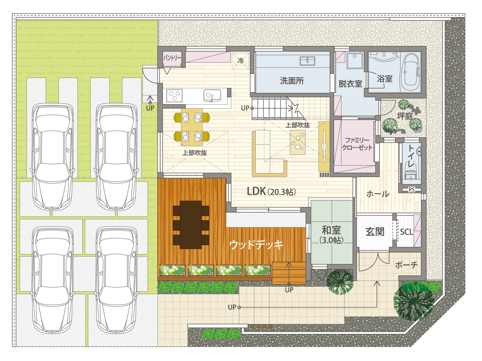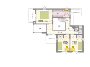 | 間取り | 3LDK+和室+ファミリークローゼット+脱衣室+WICL+ワークスペース+スカイガーデン |