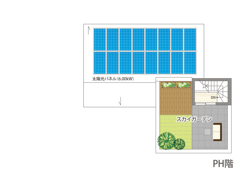 6.0kWの太陽光パネルを搭載。日々の生活エネルギーを創出。高い断熱性能と組み合わせることで、カーボンニュートラルな暮らしを実現します。