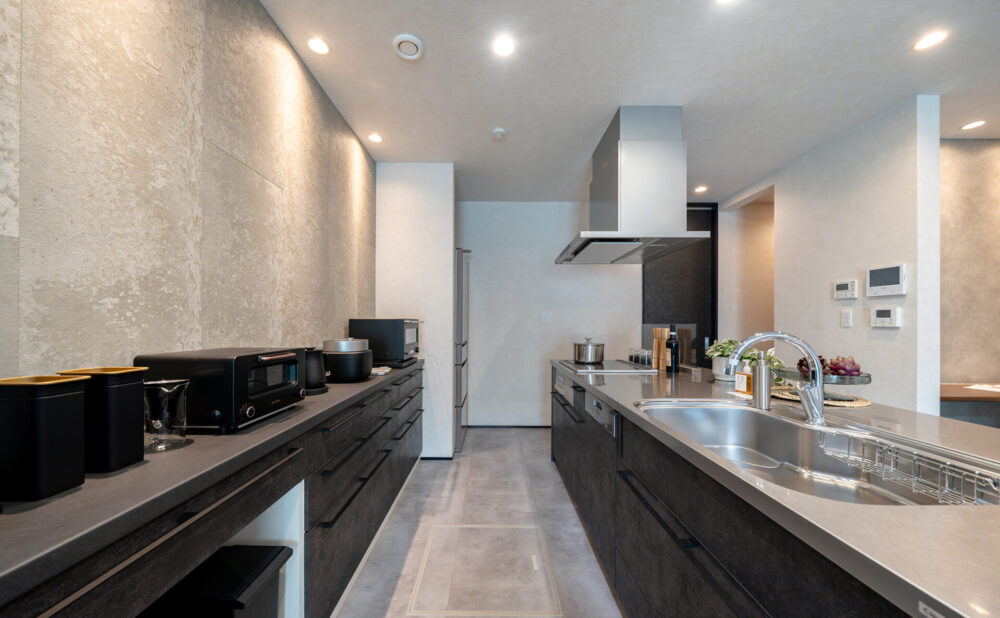 2台並列可能なビルトインガレージで愛車を眺めたり、サウナを楽しめる大型バルコニー等