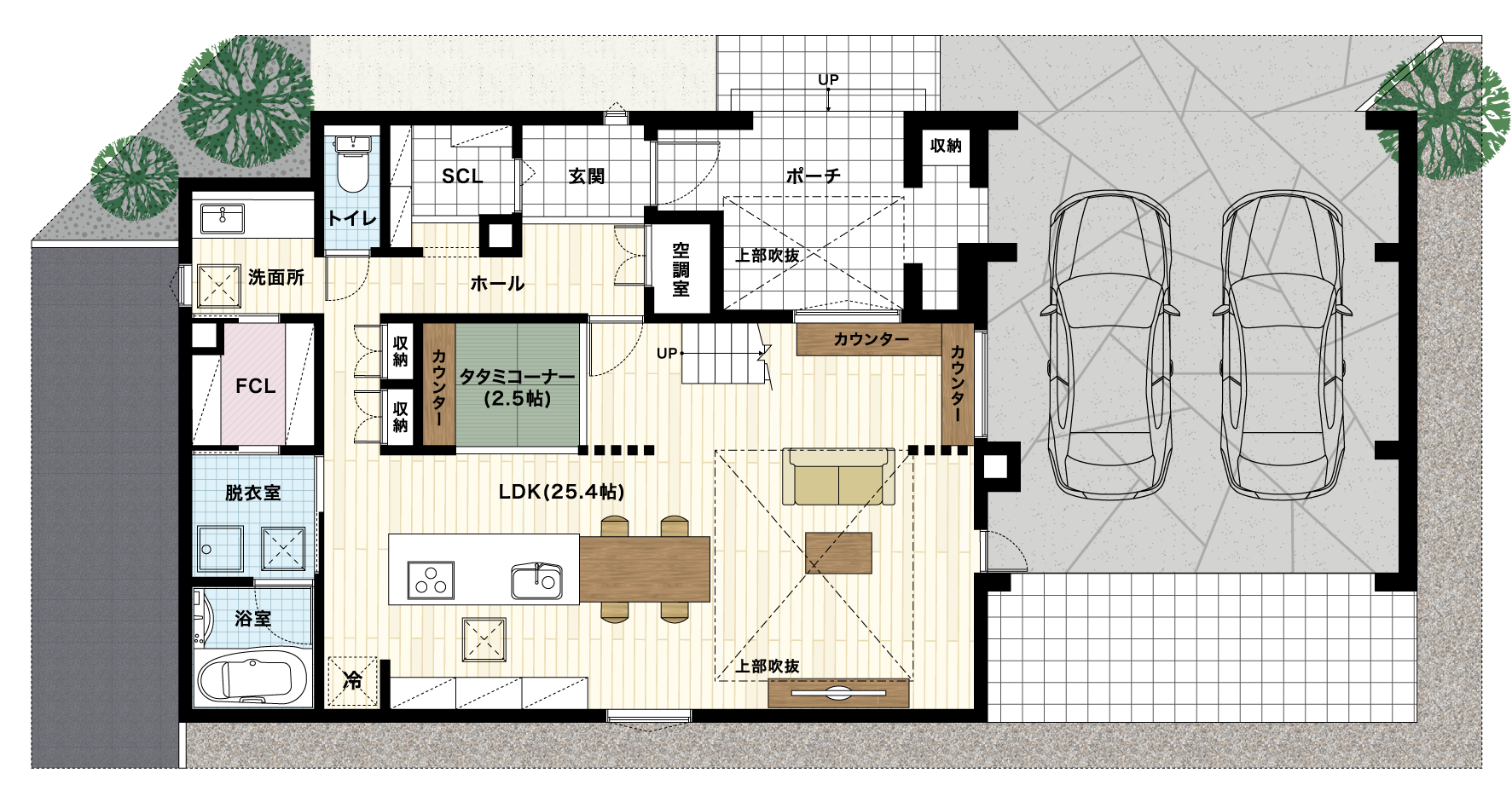ビルトインガレージ・プライベートバルコニー・全館空調・高気密高断熱・太陽光