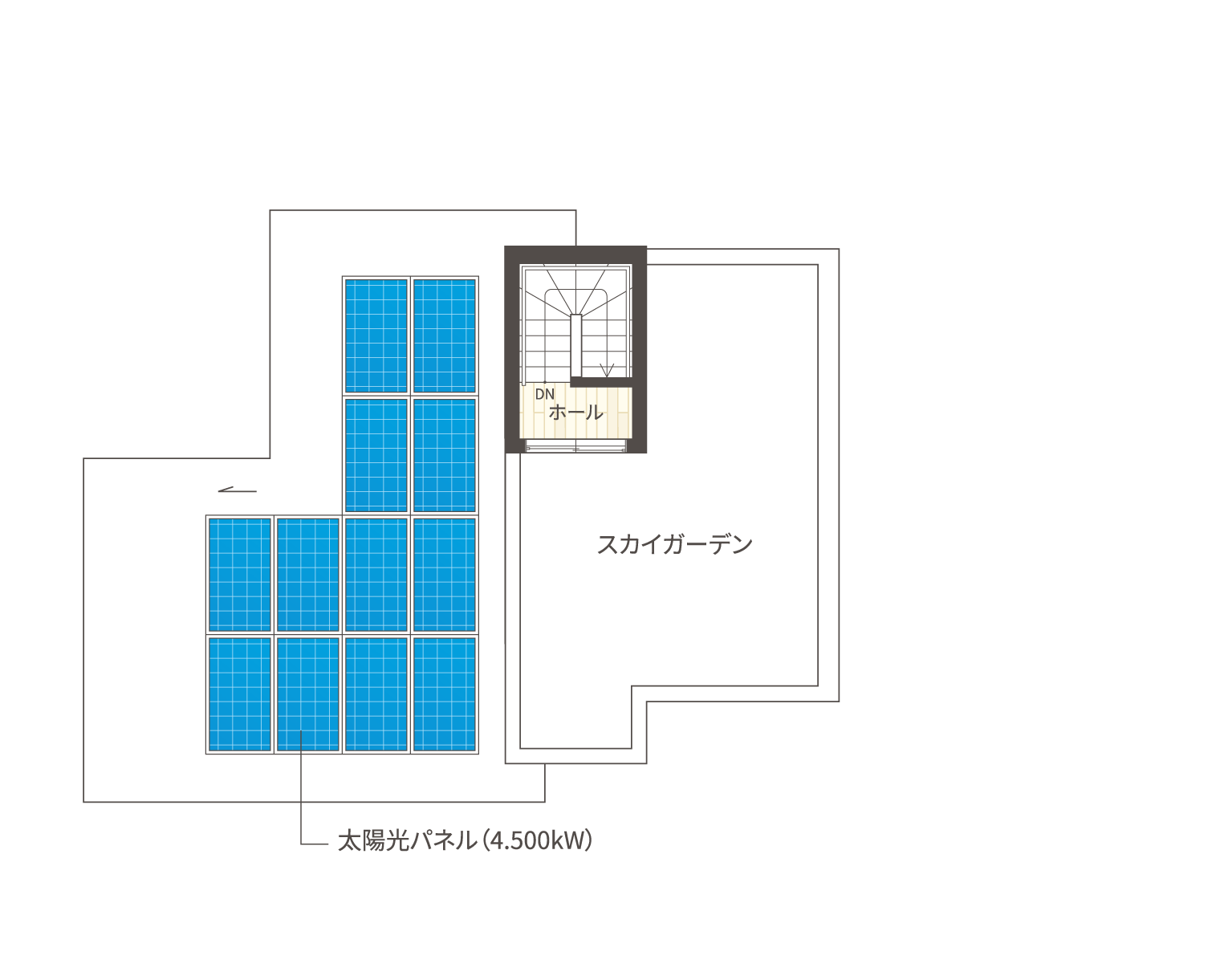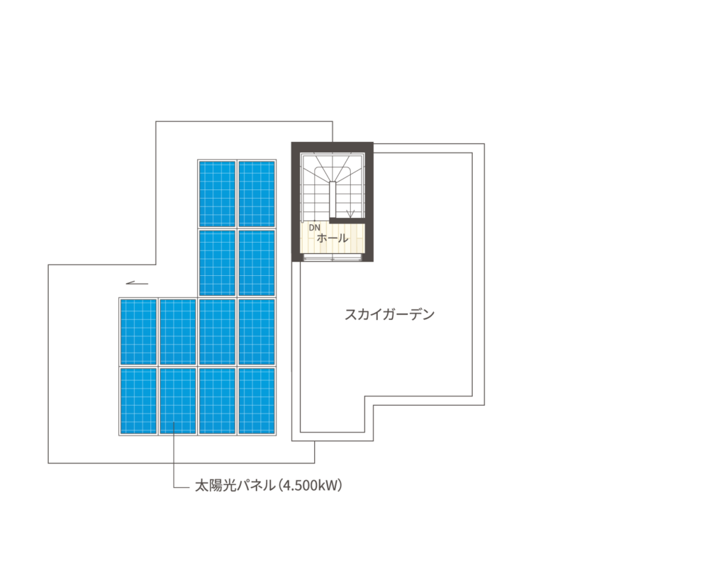 4.500kWの太陽光パネルを搭載。日々の生活エネルギーを創出。高い断熱性能と組み合わせることで、カーボンニュートラルな暮らしを実現します。