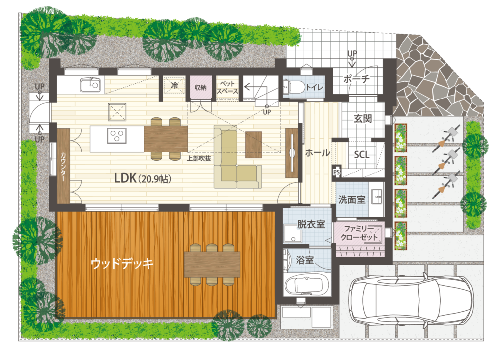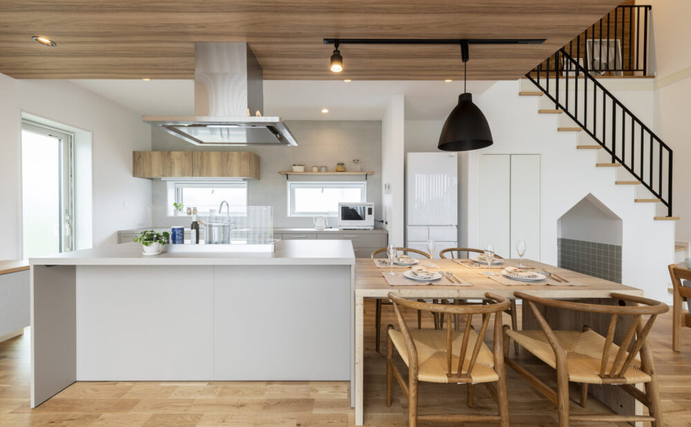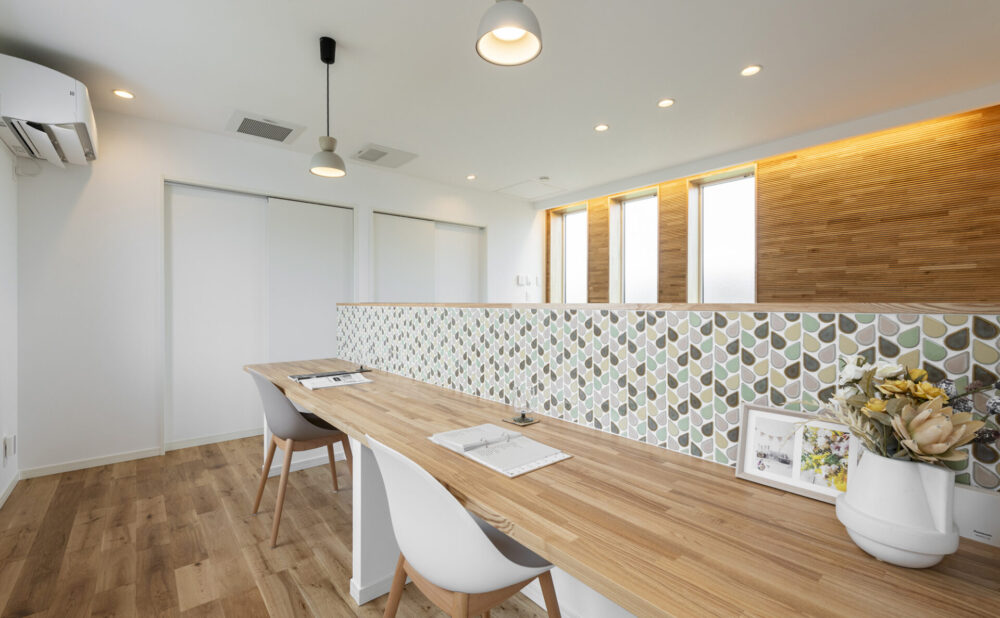 閑静なエリアに建つモデルハウスは、高い断熱性能を誇る住み心地に優れた住まい。解放感と快適性を兼ね備え、最高水準の断熱性能を誇ります。リビングと連続したウッドデッキや、バルコニーなどのアウトドア空間も充実しており、風と光を感じる健やかな住まいです。エアフロ―システムを搭載し、家全体が快適。9.0kWの太陽光パネルを採用し家計と地球にやさしい住まいです。