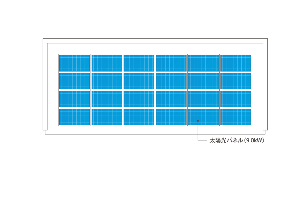 9.0kWの太陽光パネルを搭載。日々の生活エネルギーを創出。高い断熱性能と組み合わせることで、カーボンニュートラルな暮らしを実現します。