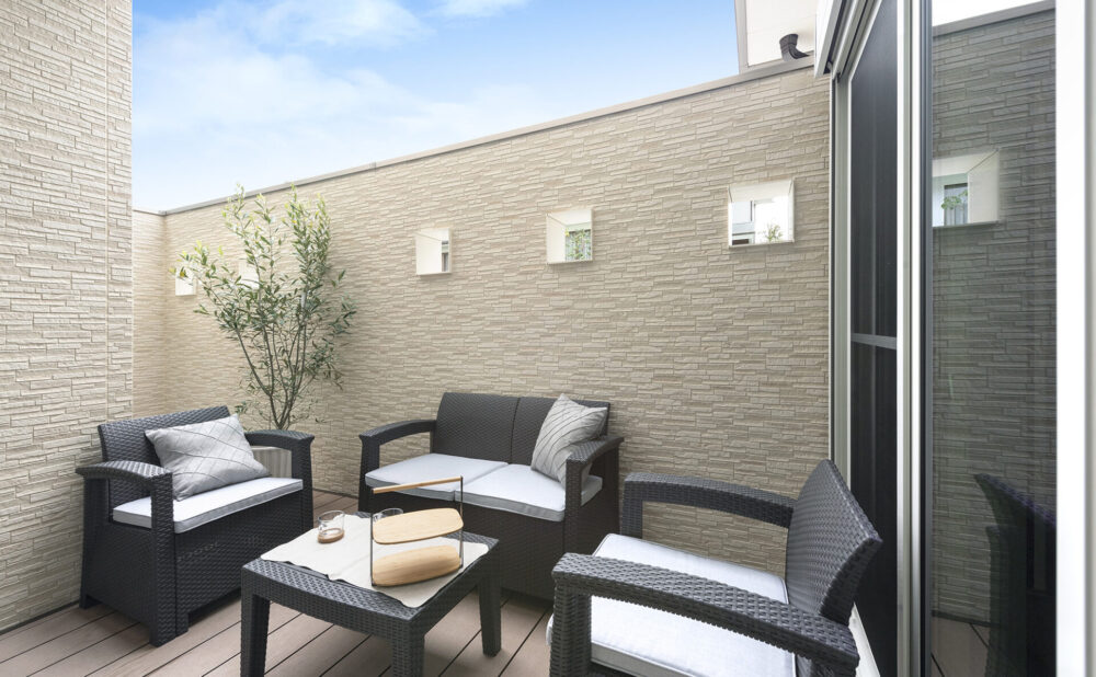 - カフェテラス、ロジア、スカイリビングバルコニー等、多様な屋外空間