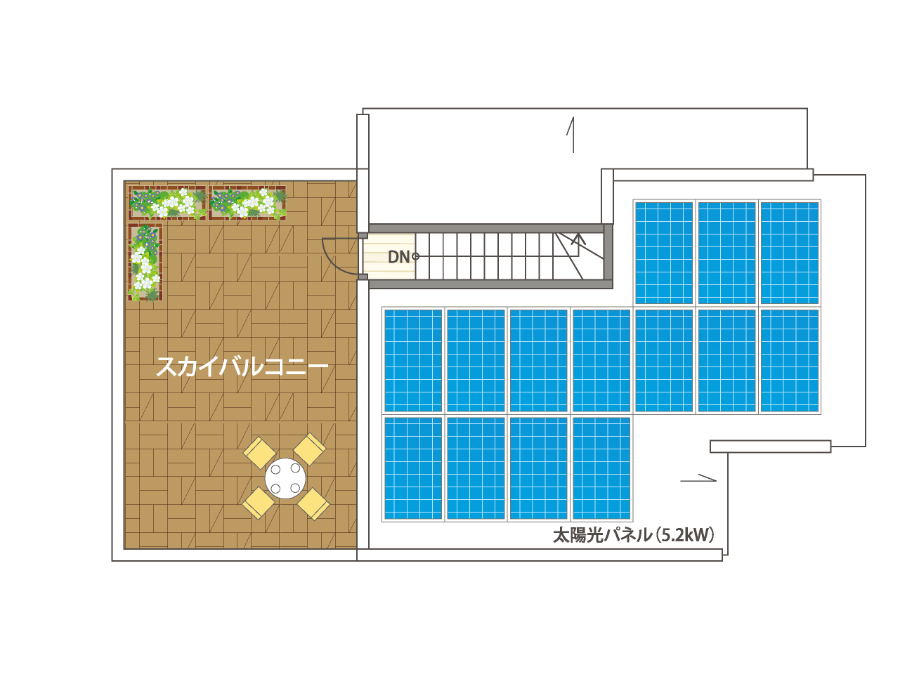 - バーべキューやお子様と水遊び等ができる屋上庭園テラス・バルコニー付き